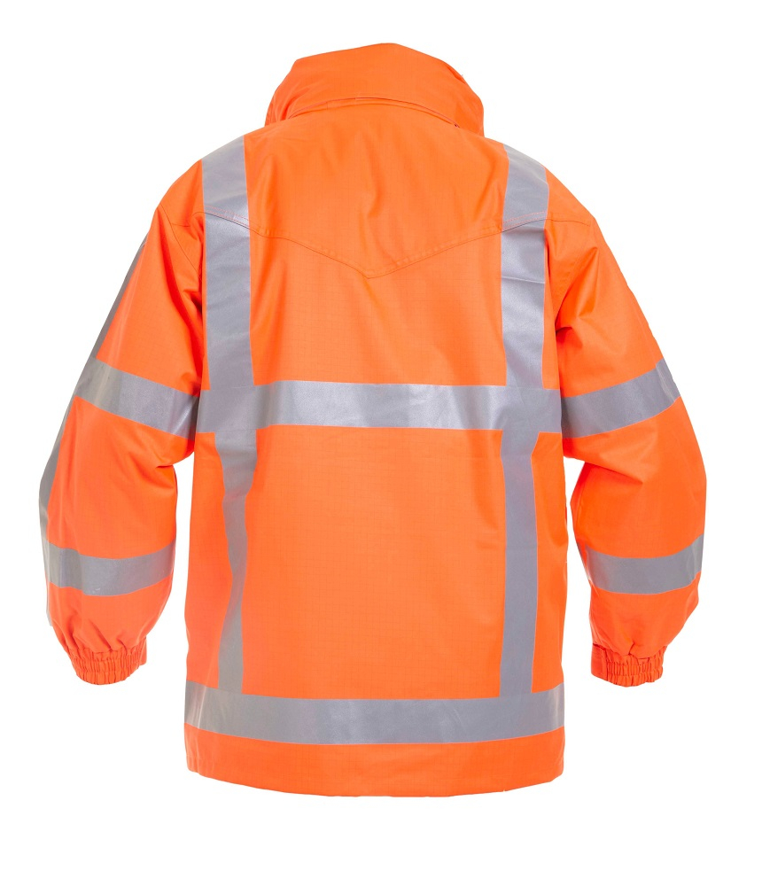 Concealed zip front with double storm flap cover and press stud closure Hood in collar with draw cord Hood with innovative fixture for improved hearing through hood Napoleon pocket Inner pocket 2 front pockets with flap 2 side pockets Adjustable cuffs using hook and loop fastening Flame retardant and anti-static Multi Simply no Sweat (SNS) 260gsm Polyester 99% / 1% Anti-static 100% FR Cotton lining Highly breathable providing great comfort Durable and cost effective Smooth textile finish Conforms to the following standards: EN1149-5:2008 Anti Static- Material Performance and design requirement EN ISO 14116:2008 Protection against limited spread Outer material Index 1/12H/60 Inner material Index 3/5H/60 EN ISO 20471:2013 Class 3 High visibility EN343:2003 + A1:2007 Class 3:3 Protection against rain EN 13034:2005+A1:2009 Protection against liquid chemicals (Type 6) EN ISO 13688:2013 General requirements for protective clothing RIS-3279-TOM Issue 1