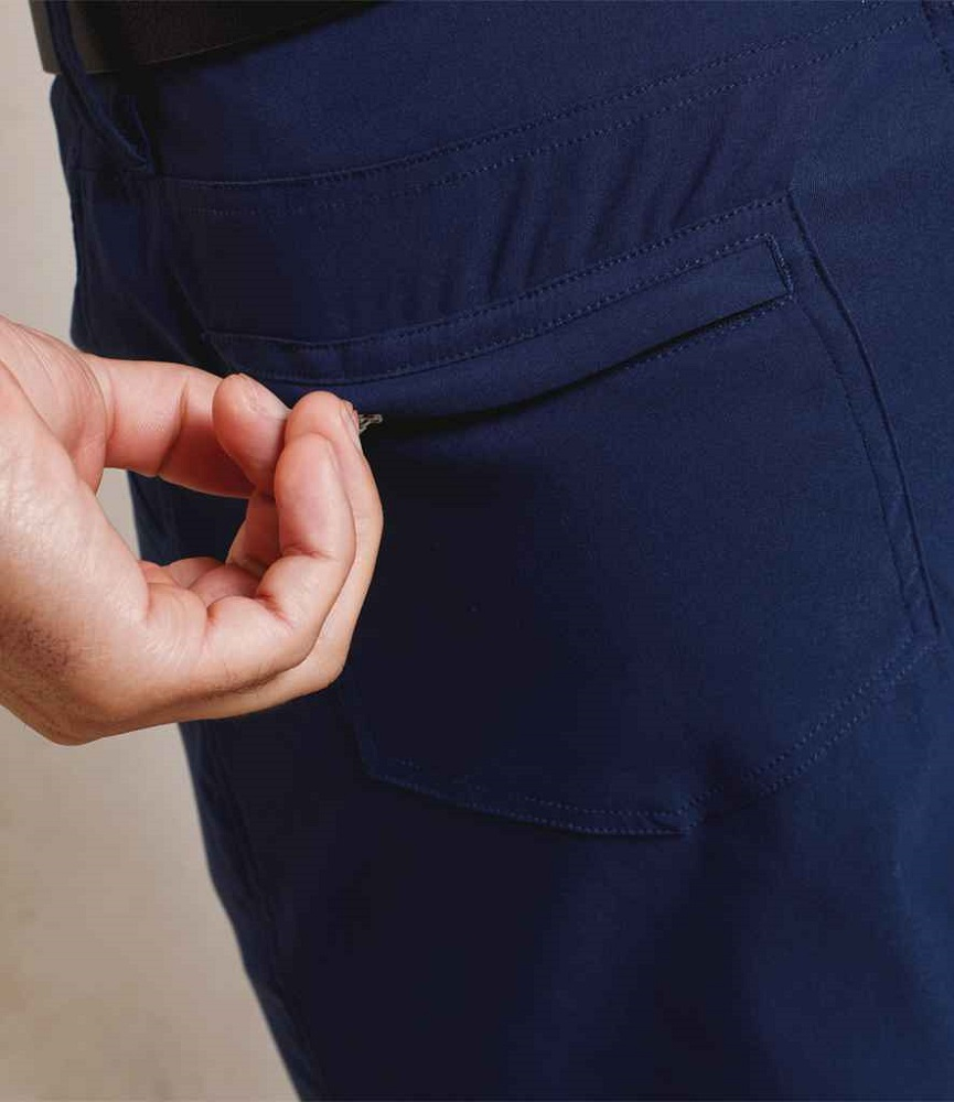 Nylon teamed with elastane makes for a durable and lightweight pair of workwear trousers for people working across many different industries. Great for all body shapes due to the stretchy fabric and hidden elasticated waistband which is fitted with belt loops and button fastening. For complete practicality, there are multiple pockets to the sides, reverse and on the leg. Available in two leg lengths and a good range of sizes, the 'Adapt' trouser lives up to its name as being suitable for everyone! Regular leg: 31" / 79cm. Long leg: 34" / 86cm