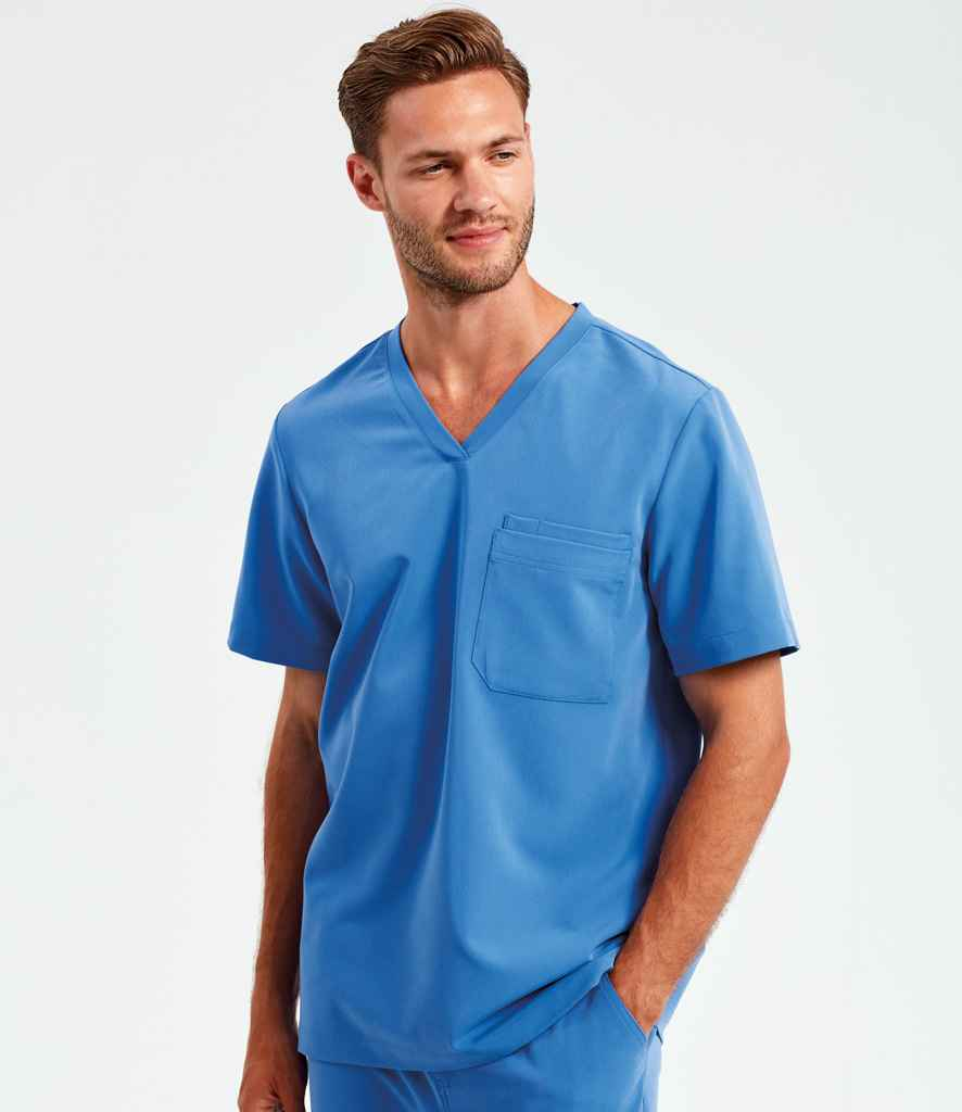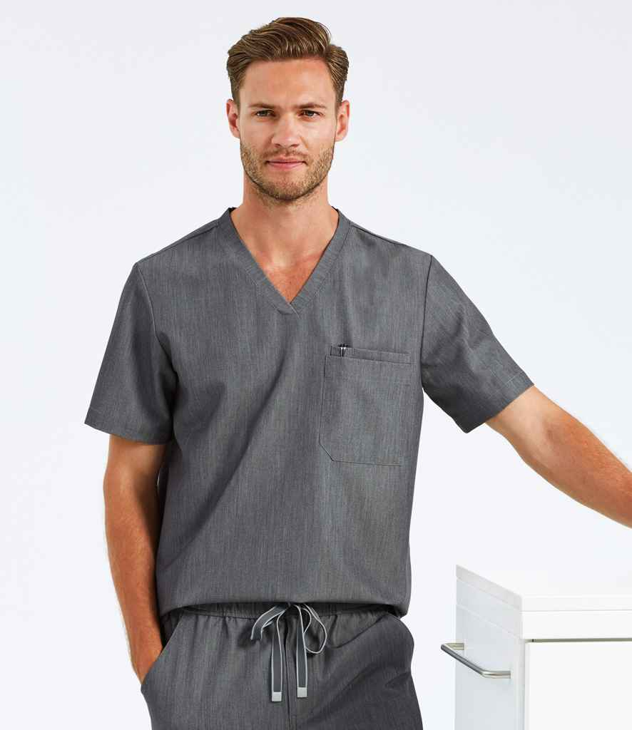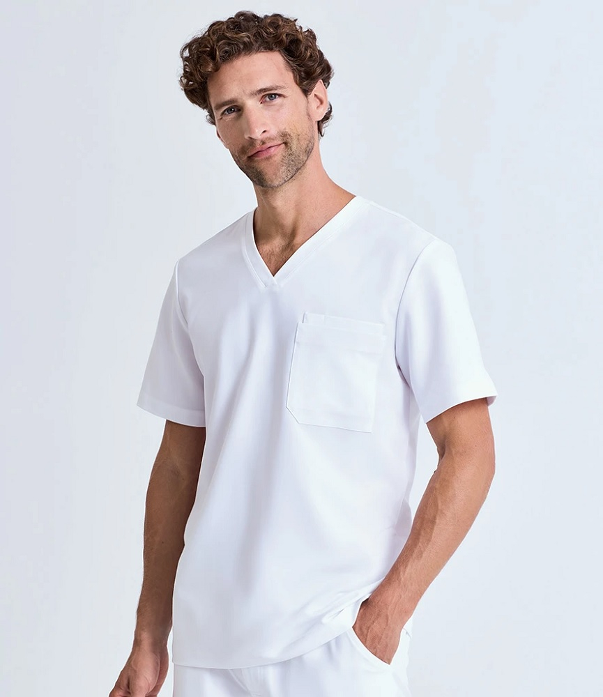 V-neck style with 3-in-1 chest pockets and combined phone and pen pocket.