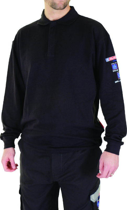 Flame Retardant, Anti-Static, ARC long sleeved polo shirt. 210gsm 60/40 Modacrylic/cotton blend Pique fabric. Inherently flame retardant fabric. FR properties will not diminish with repeated laundering. For industrial workers exposed to heat. Not suitable for fire fighters. 3 Button placket. Ribbed cuffs. Robust yet soft and comfortable to wear.