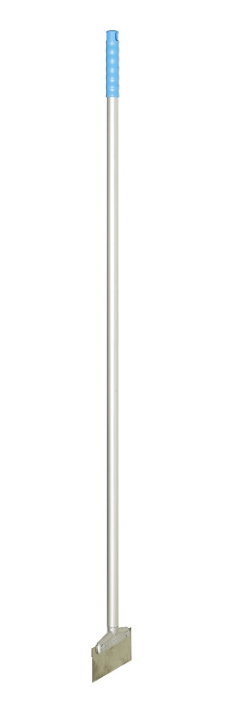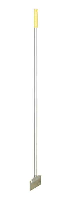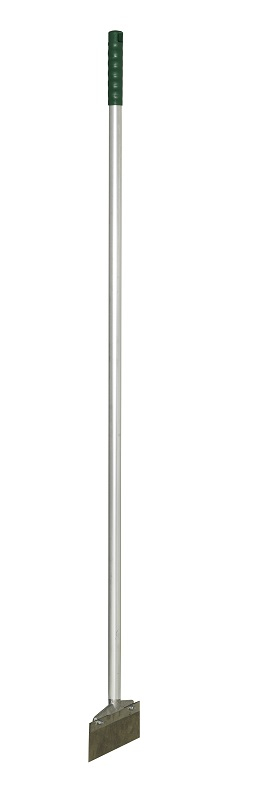 For removing impacted material from flooring, such as concrete.  Extremely durable, rugged construction.  Inseparable handle includes polyporpylene grip.